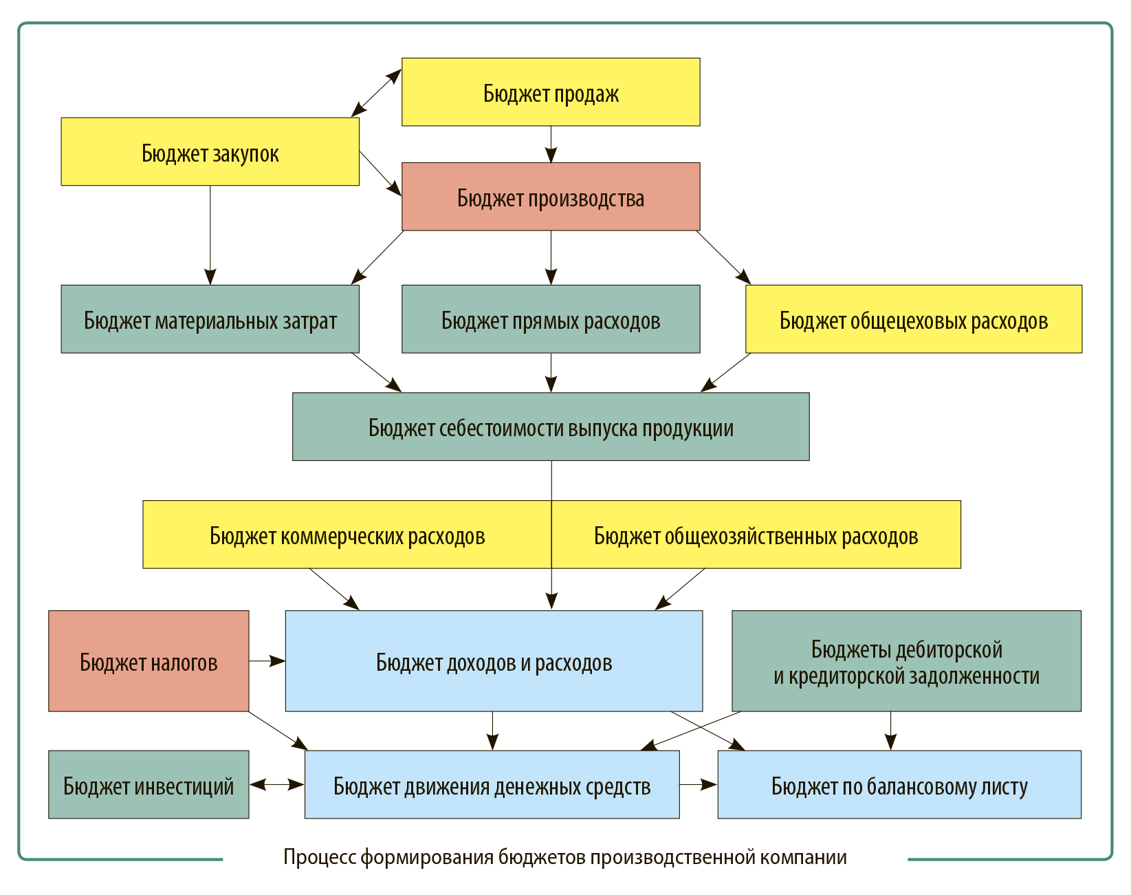 Для большей наглядности процесс формирования бюджетов производственной компании можно представить графически (см. схему).