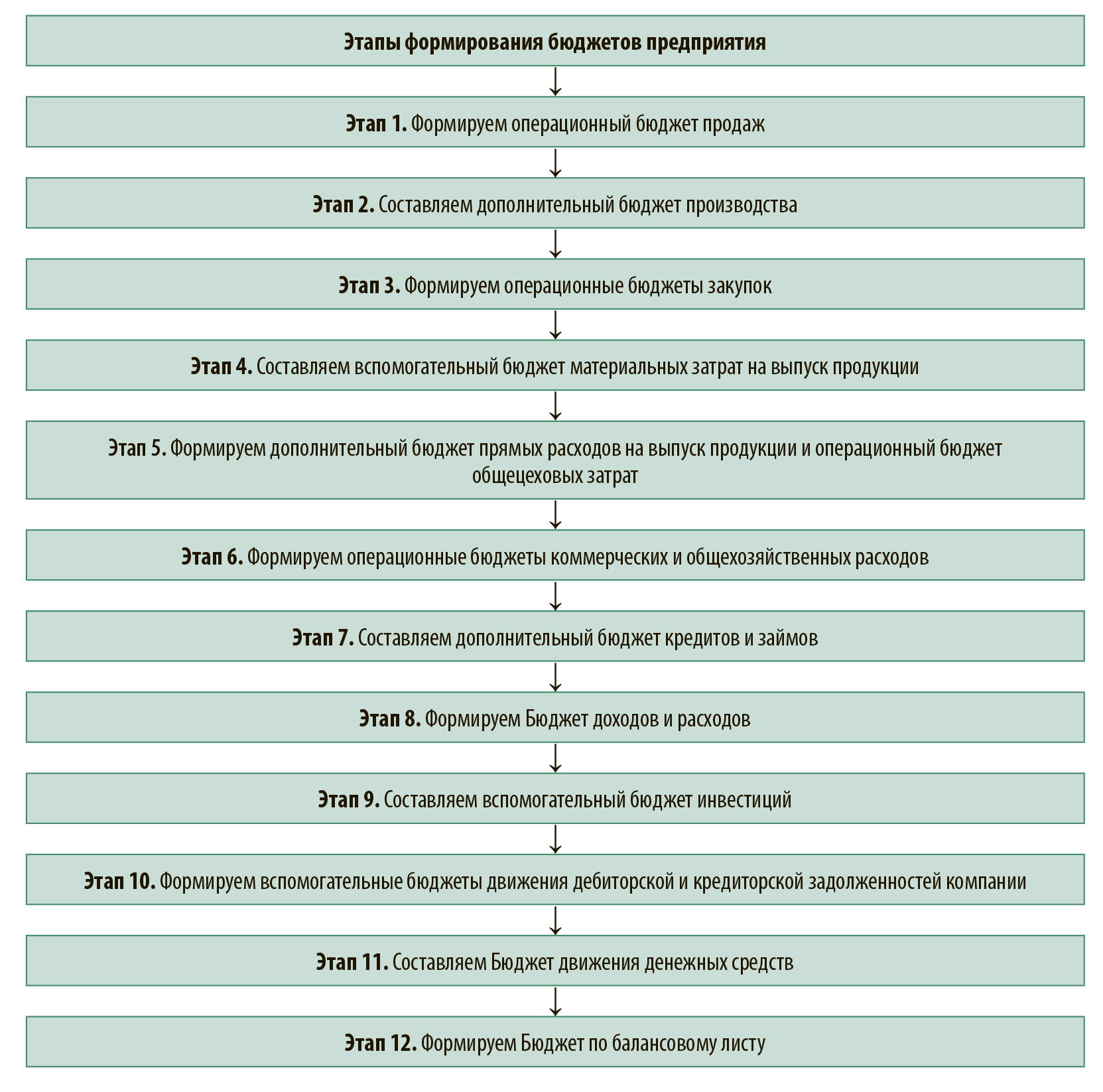 Процесс формирования бюджетов предприятия включает 12 этапов: