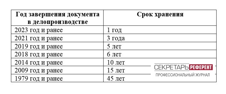 Быстро установить, документы за какой год могут быть уничтожены в 2025 году, поможет Таблица.