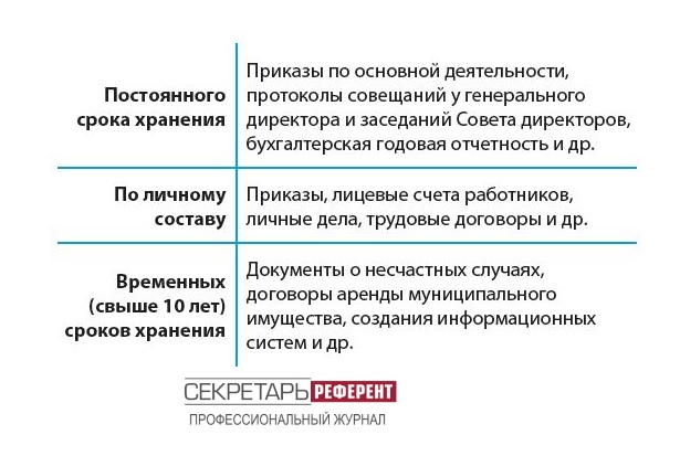 Сразу после просмотра и установления срока хранения документа его нужно отнести к одной из трех категорий: документы, которые останутся в архиве; документы, которые будут уничтожены в ближайшие годы; документы, которые уже можно уничтожить. Самая важная категория – первая. Дела, которые к ней относятся, приведены в Примере.