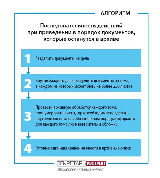 Архивным документам уделяется особое внимание. Сначала необходимо оценить, в каком состоянии находятся эти документы. А затем при необходимости привести их в порядок (Алгоритм).
